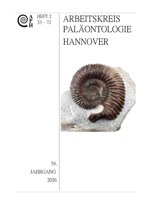 Heft 2/2026 ist seit 15.04.2026 im Druck. Neben den Protokollen der Jahreshauptversammlung vom 07.03.2026 und der neuen Satzung enthält es 2 interessante Beiträge zur ehemaligen Tongrube Gerzen und einem Fischfund aus dem Campan von Hannover. Die Schriftleitung wünscht viel Freude beim Lesen!