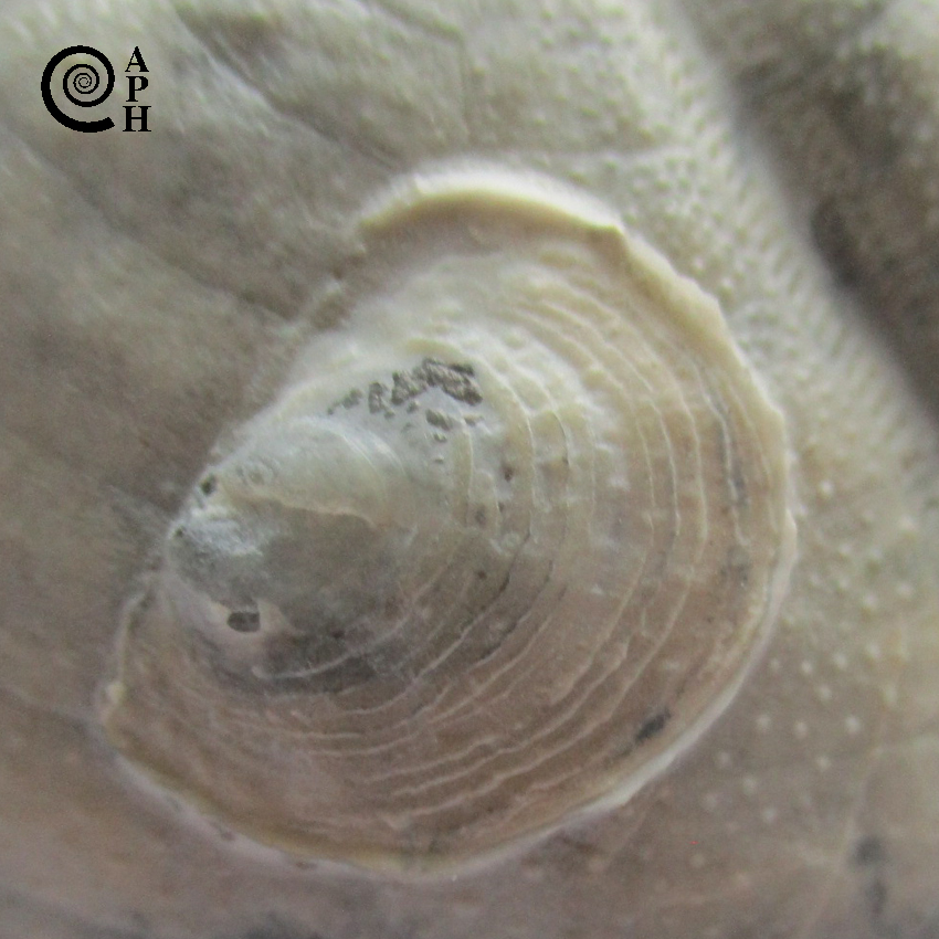Unterklappe, auf einen Schwamm aufgewachsen, oberes Untercampan, Südgrube (Misburg), Slg. & Foto K. Schröder